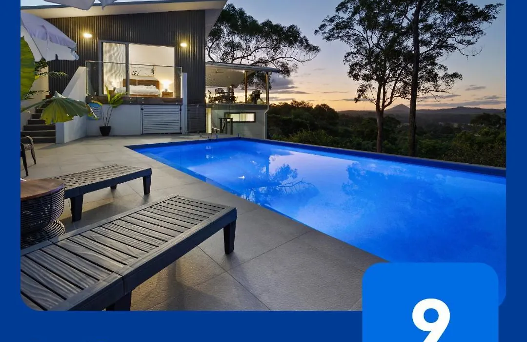 ザ・ジンジャー・ファクトリーから6キロメートル離れたところにある寝室3室のHinterland Dreamers Poolside Retreat Yandina Creek 別荘には、山の景色を望むテラスがあります。 プライベートなプールを提供する浴室3室の別荘から自動車で15分離れたThe Original Eumundi Marketsお客様を招待いたします。